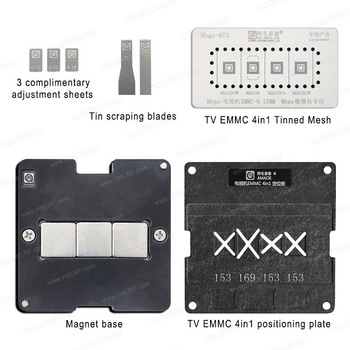 Amaoe TV EMMC 4 en 1 Reballing Stencil BGA153 BGA169 herramientas de reparación con base magnética de placa de ubicación de red